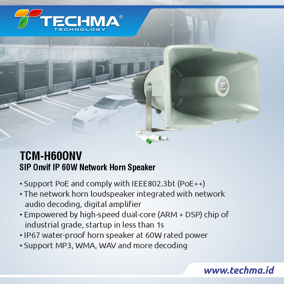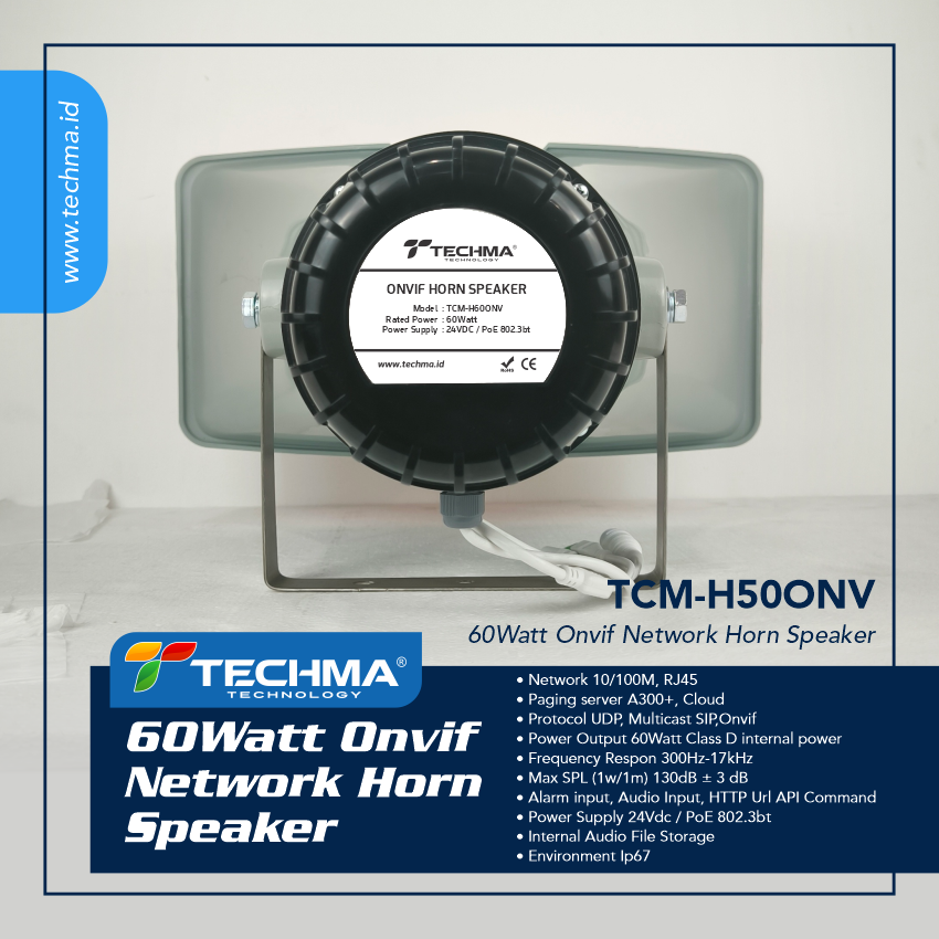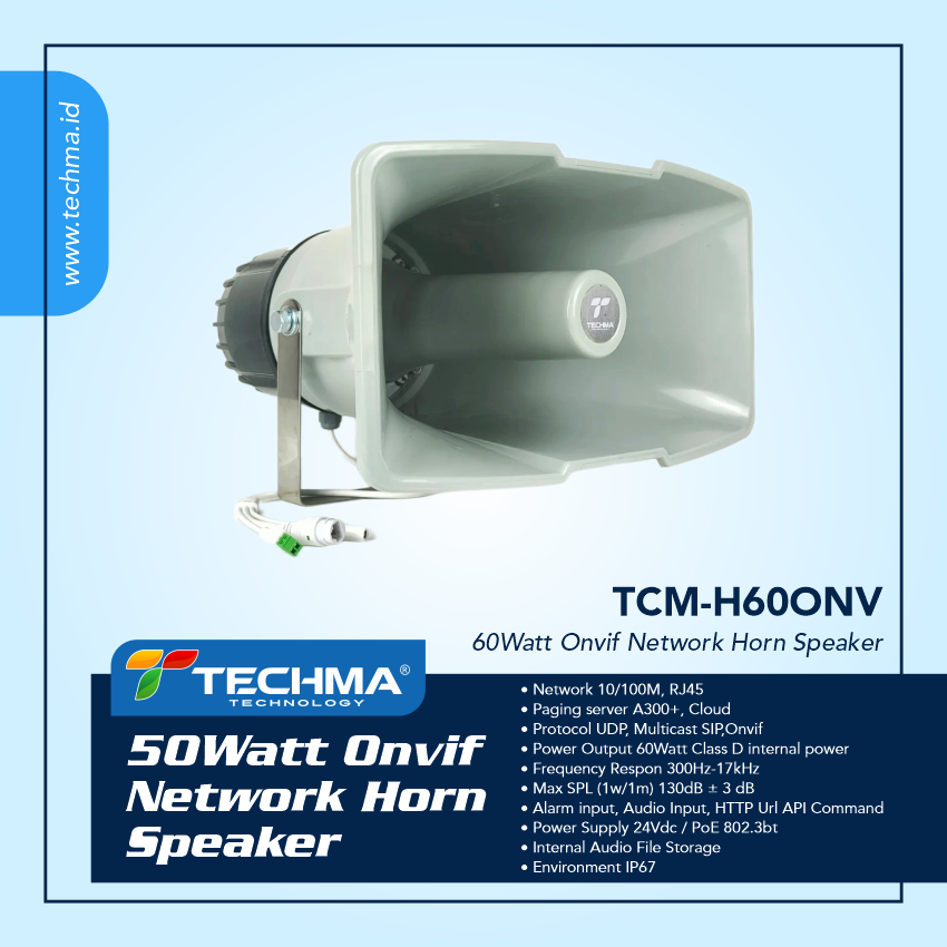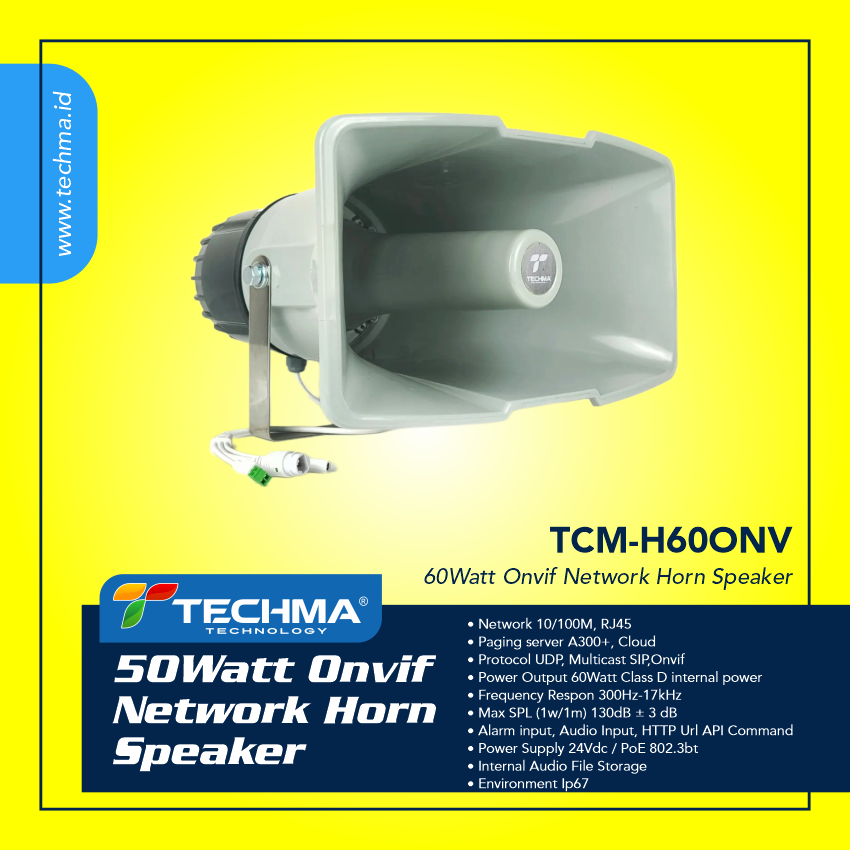 The Network Horn Speaker is a simple-to-install outdoor loudspeaker that provides clear, long-range speech for remote speaking in public notification applications. In emergency, TCM-H60ONV enables an operator to remotely address people and deliver pre-recorded alarm messages which can be manually or automatically triggered via LAN.