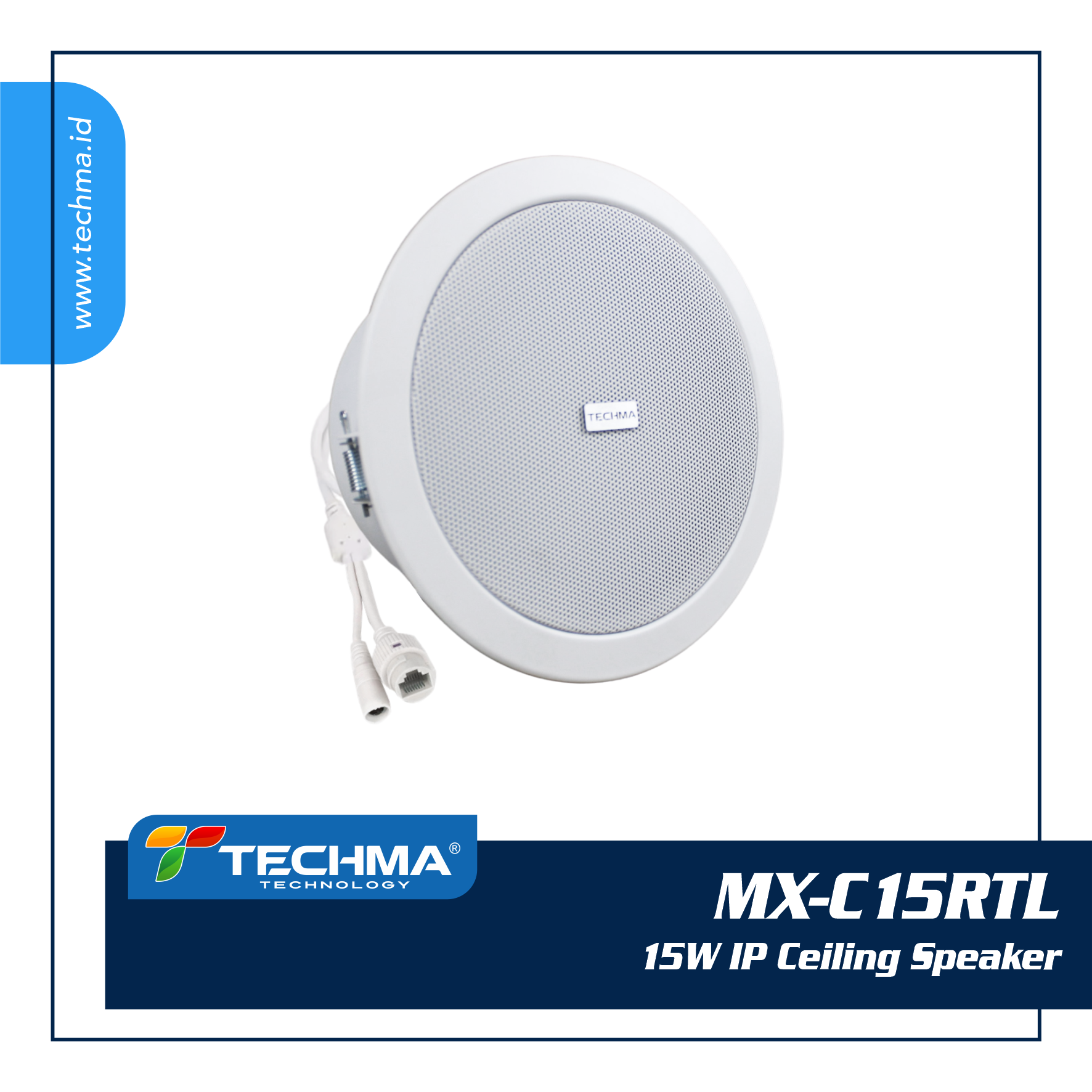 speaker you can barely see by being installed directly overhead, without having to sacrifice any wall, floor, or shelf space. This speaker is an active speaker, inside it is installed a class D power amplifier, the RJ45 input connector is equipped with PoE so that it does not require pulling the power cable again. Easy to instal, requiring only that you cut a hole, feed the wire through, and simply drop the speaker by letting the spring clamps seize the ceiling with no extra assembly or mess. These speakers are ideally suited for installation in area for sound reproduction of reading announcement, declaring states of emergency, and playing background music such as shopping malls, restaurant, metro station, hotels, coffee bars, room schools etc. This IP Ceiling speaker has an analog slave speaker terminal that can