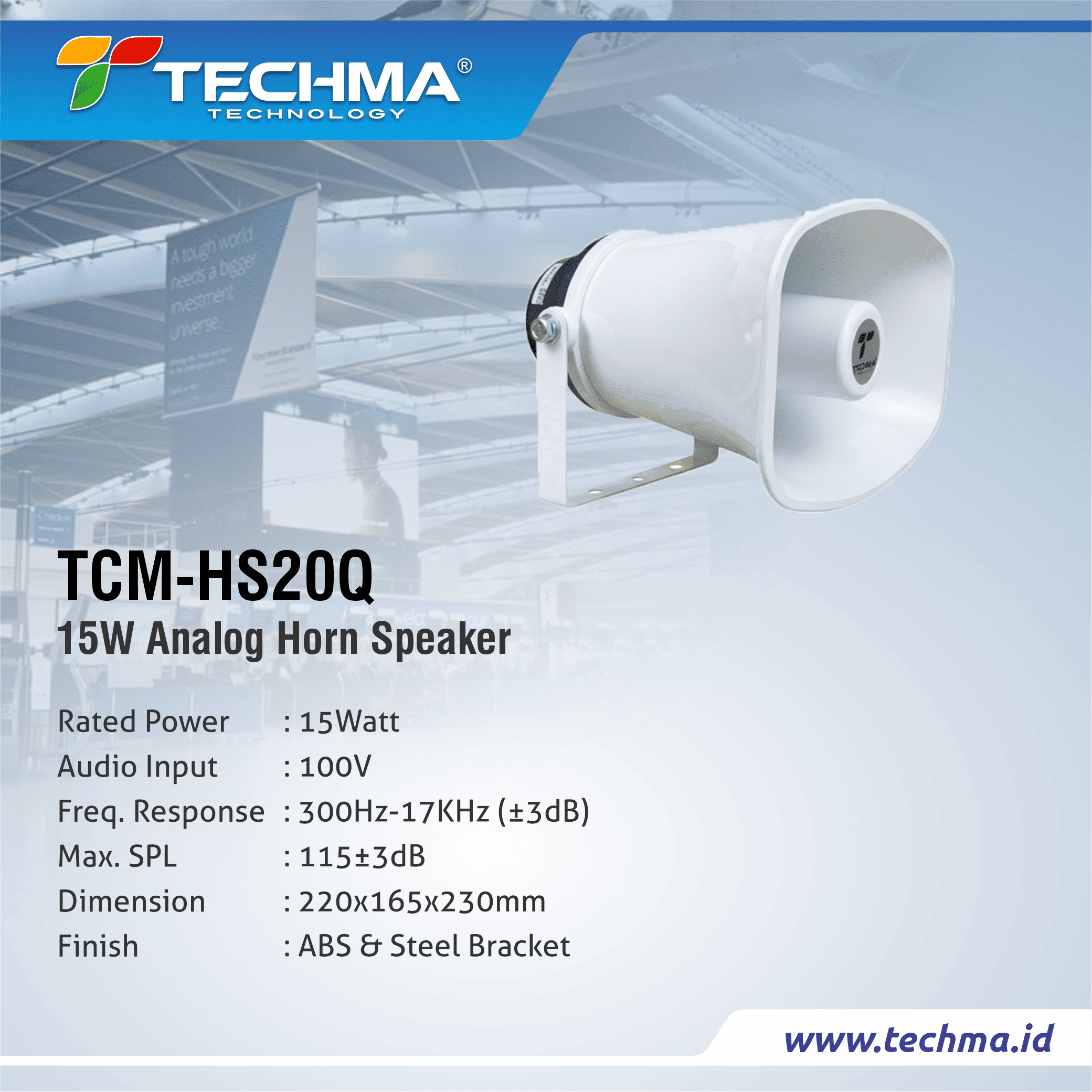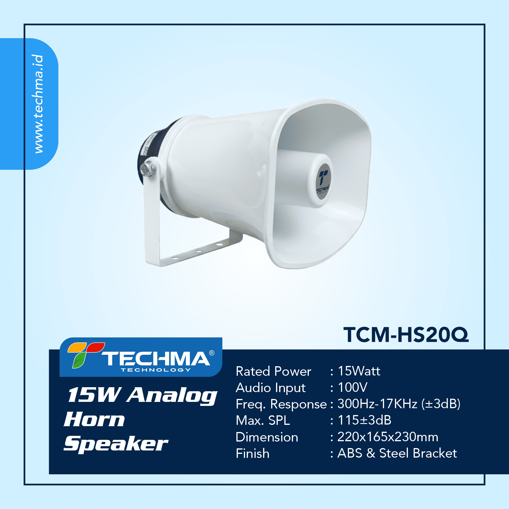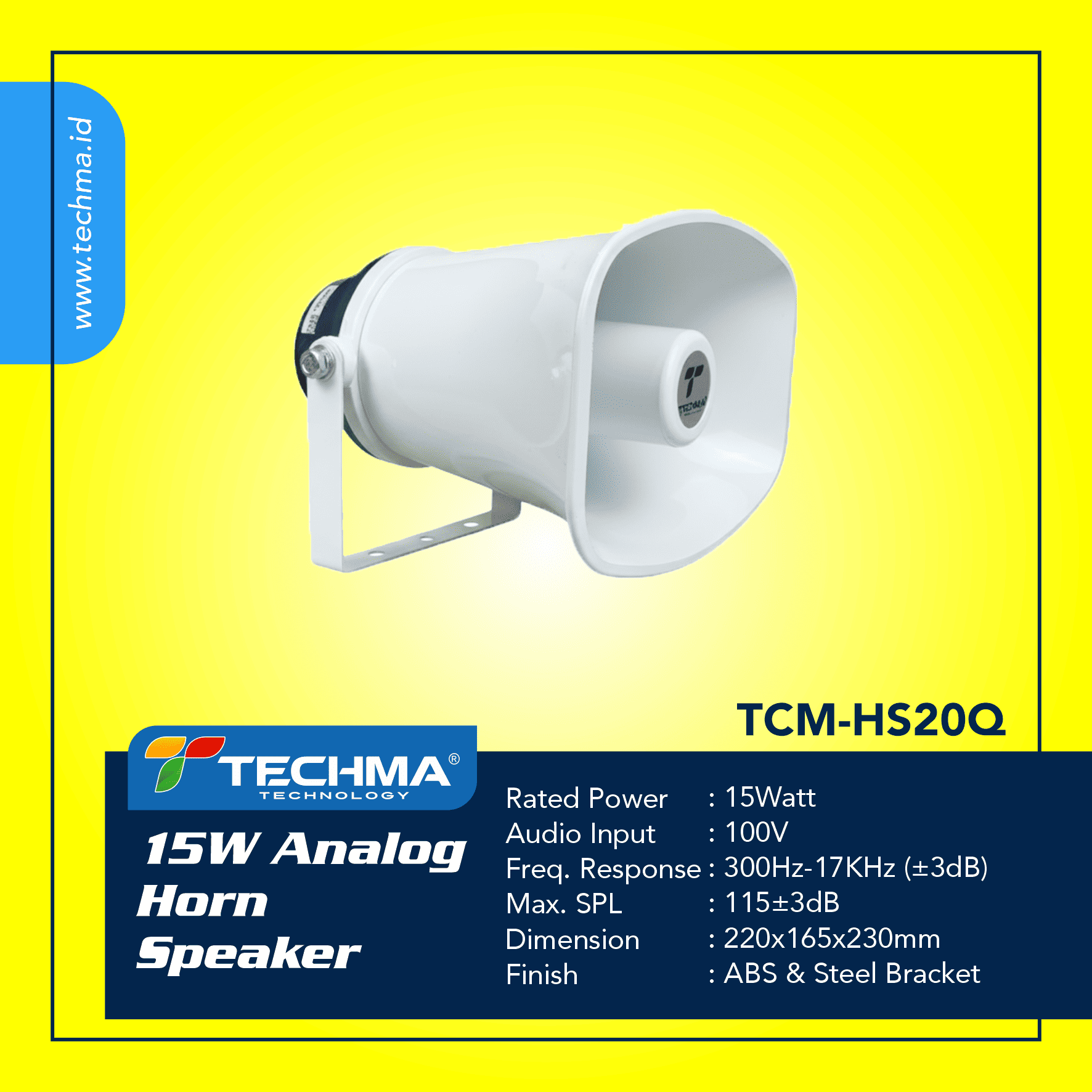 Techma Analog Horn Speaker is an analog speaker designed to deliver sound with wide coverage and optimal clarity. Operating without the need for digital or network connections, this device is fully compatible with conventional audio systems. Known for its ability to project sound across large areas, it is ideal for use in announcement systems, emergency alerts, and various applications in industrial, commercial, and public environments. Built from durable materials with a robust construction, the Techma Analog Horn Speaker is suitable for both indoor and outdoor use under various weather conditions.